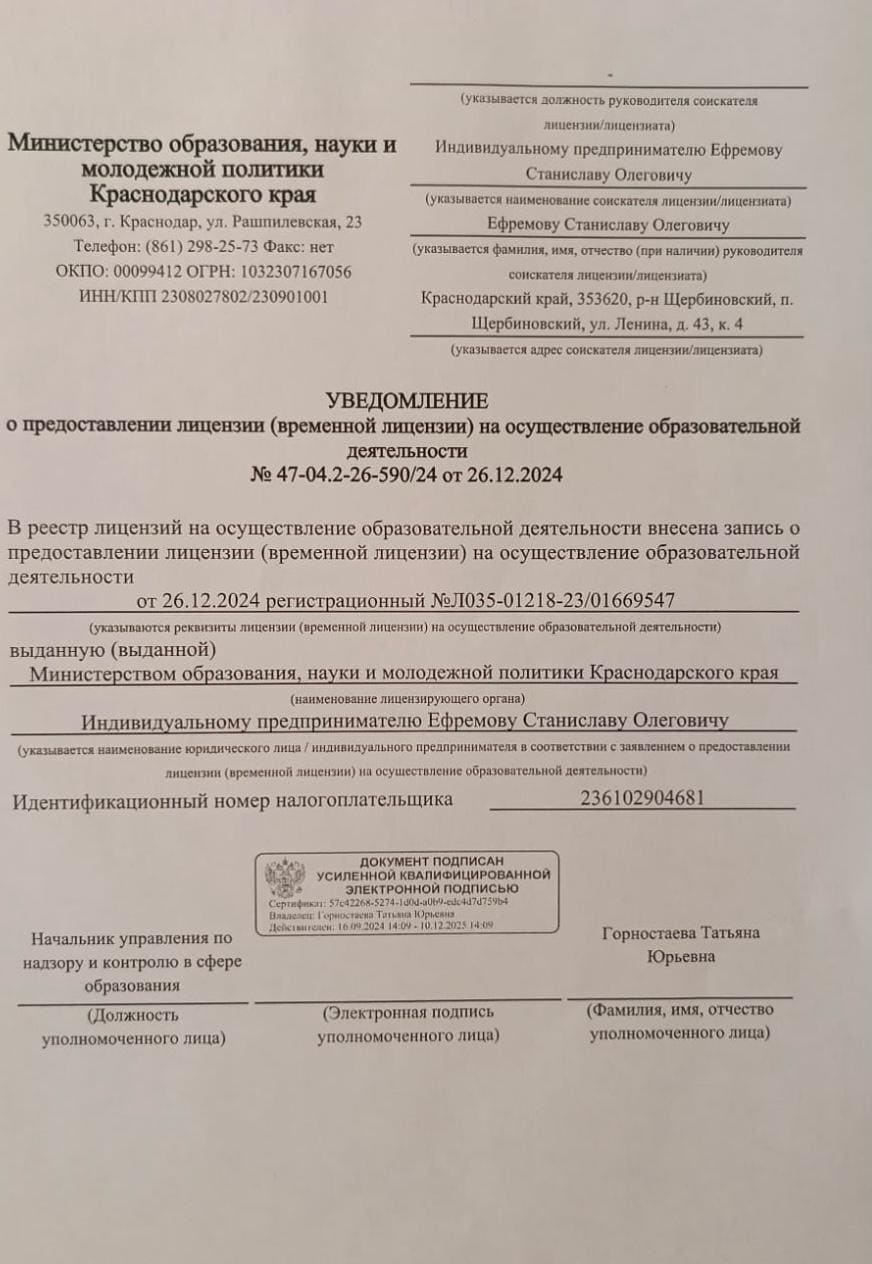 На каждом занятии предоставляем информацию согласно учебному плану, точечно корректируем работу ученика для получения высоких результатов.
